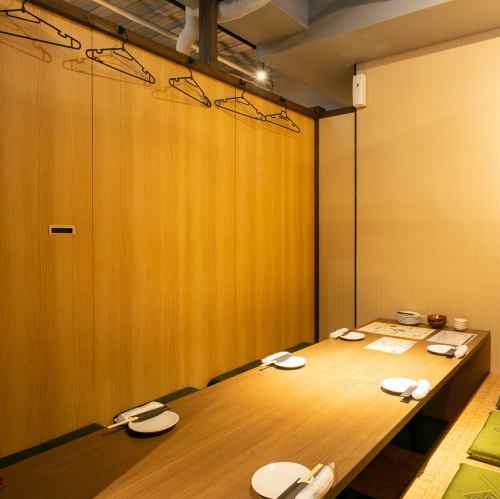 掘りごたつ席完全個室(~8名様×4部屋)8名様までの掘りごたつ席は同僚との宴会から女子会、会合まで幅広いシーンに使える空間。落ち着いた雰囲気の中でゆったりと酒食を満喫できるお席です。周りのお客様に気兼ねすることなく、会話とお酒をお楽しみください。